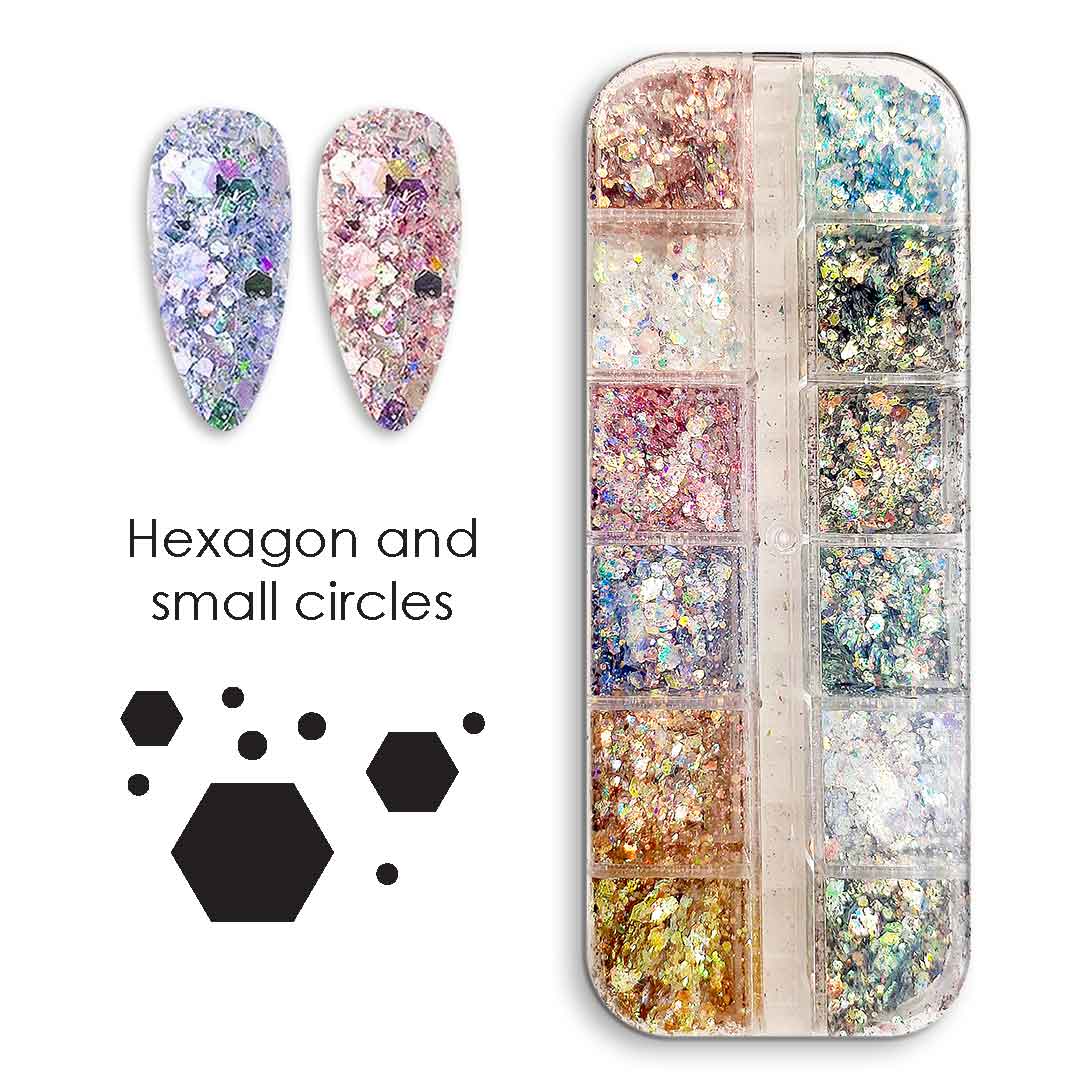 מארז לקישוטי ציפורניים מכיל 12 צבעים/סוגים.