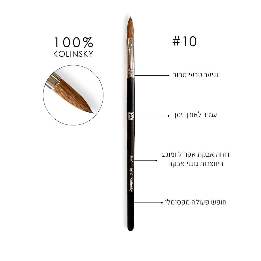 מכחול 10 עגול, מבית אן אנד די, לבנייה באקריל מיוצר משיער קולינסקי טבעי, גמיש, וחזק.