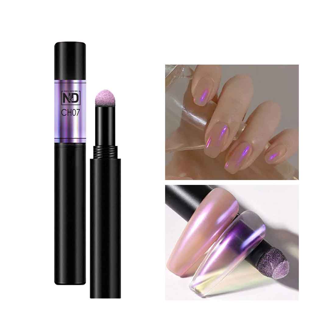 עט אבקת כרום למראה הולוגרמה לקישוטי ציפורניים, ליצירת מראה מבריק זוהר בגוונים משתנים. נח וקל לשימוש.