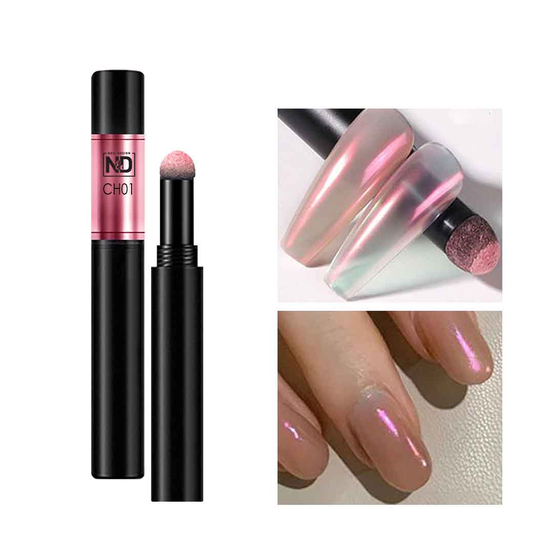 עט אבקת כרום למראה הולוגרמה לקישוטי ציפורניים, ליצירת מראה מבריק זוהר בגוונים משתנים. נח וקל לשימוש.
